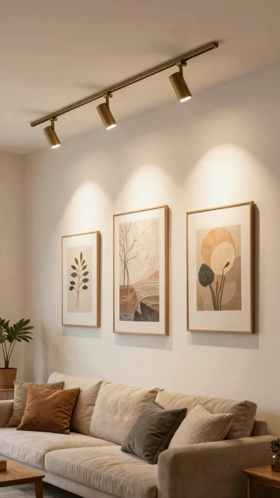 Adjustable track lighting is a sleek and modern option that allows you to direct light exactly where you need it. In a rustic setting, opt for fixtures made from wood or metal to maintain the farmhouse vibe while enhancing functionality. This type of lighting is perfect for highlighting artwork or architectural features, creating a dynamic visual impact in your home.