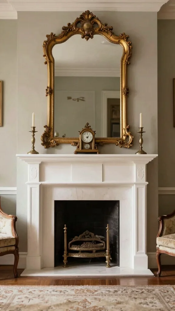 A vintage grand mirror can transform your living room into a luxurious space. Imagine a large, ornate frame filled with intricate carvings that draws the eye and enhances elegance. This mirror shines brilliantly when placed over a fireplace or console table, reflecting light and beauty back into the room.
