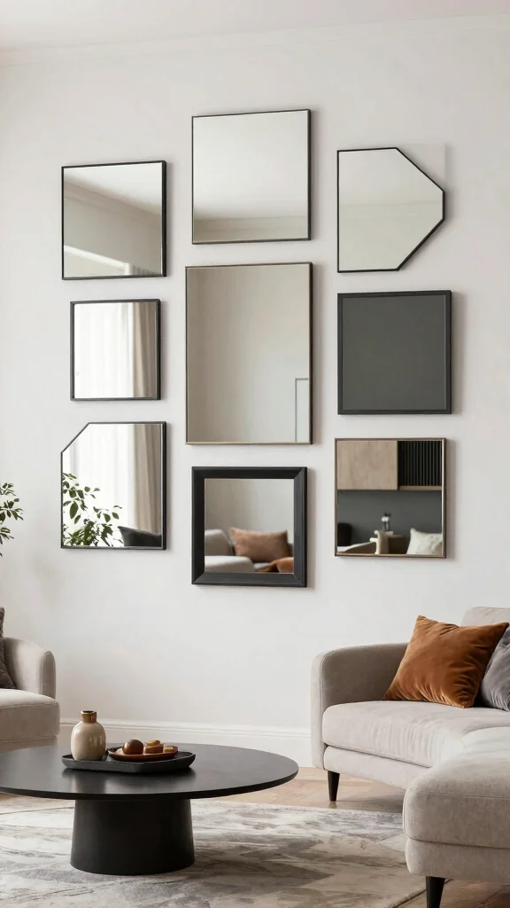 Cluster several different-shaped mirrors together for a dynamic arrangement that sparks conversation. Check online retailers or local home stores for stylish, affordable options.