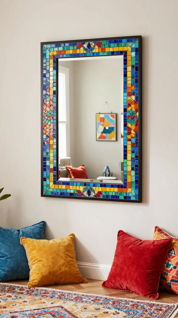 Colorful mosaic mirrors inject a lively spirit into your living room. Featuring vibrant colors and unique designs, they create a cheerful focal point in your decor.