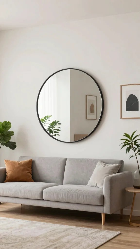 Did you know a 24-inch minimalist round mirror can visually enlarge a space by up to 20%? It shines against textures and bold colors, making your living room feel brighter and more open.