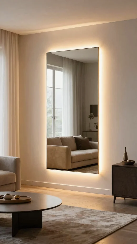 Incorporating modern decorative mirrors with LED lights into your living room can elevate both style and functionality. These mirrors not only reflect your image but provide soft ambient lighting, perfect for evening relaxation.