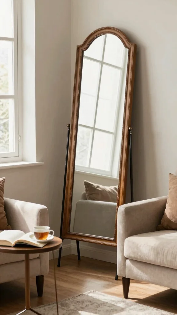 A statement floor-to-ceiling mirror can impart a luxurious feel to your living room. It reflects light and space, creating an elegant atmosphere that enhances your decor.