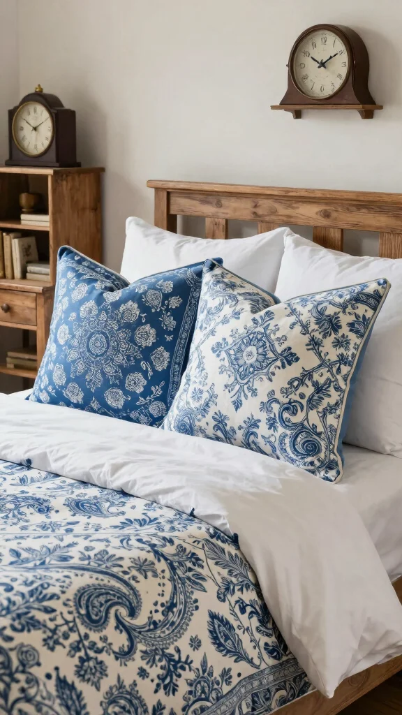 Vintage-inspired prints can infuse your bedroom with charm and nostalgia. Blue throw pillows featuring classic patterns, such as paisley or toile, evoke warmth while maintaining a tranquil atmosphere. Mixing these designs with modern elements creates a unique blend of old and new.