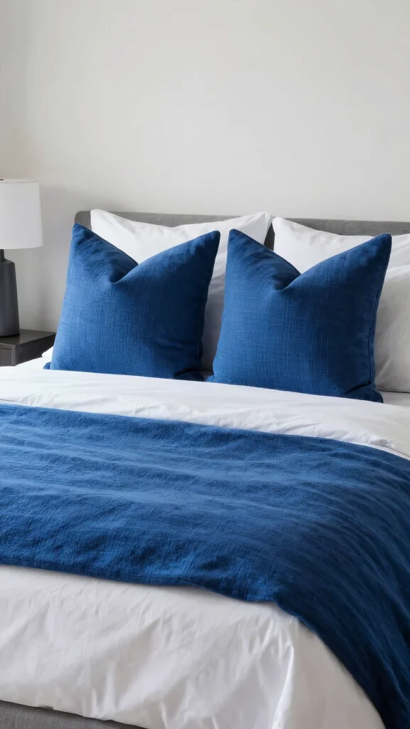 If you prefer a more vibrant approach, bright blue throw pillows can inject energy into your bedroom decor. A lively cerulean or cobalt can serve as a statement piece against neutral backgrounds, making your space pop with color.