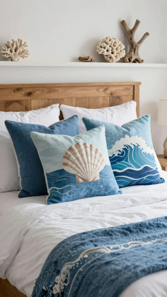 Infuse your space with the calming essence of the ocean through marine-inspired throw pillows. Designs featuring seashells, waves, or starfish can elevate your coastal decor while maintaining a soothing ambiance. These thematic pillows help connect your indoor space to the beauty of nature.