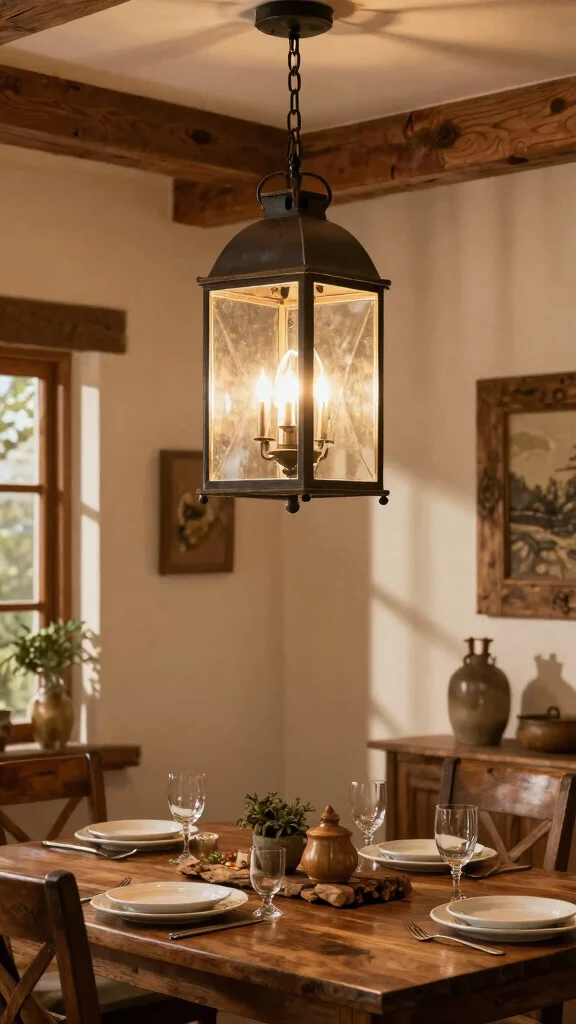 Look for designs that maintain a balance of modern and rustic elements, such as metal frames with wood accents or glass shades in earthy colors. These fixtures can easily transition from statement pieces to functional lighting.