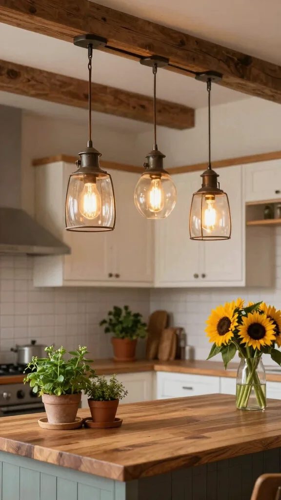 The right pendant lights successfully merge functionality with rustic elegance.