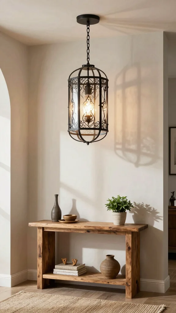 The contrast between sturdy iron and delicate glass creates an eye-catching focal point in your home. Look for fixtures that showcase both materials with unique designs, enhancing the rustic charm while providing modern functionality.