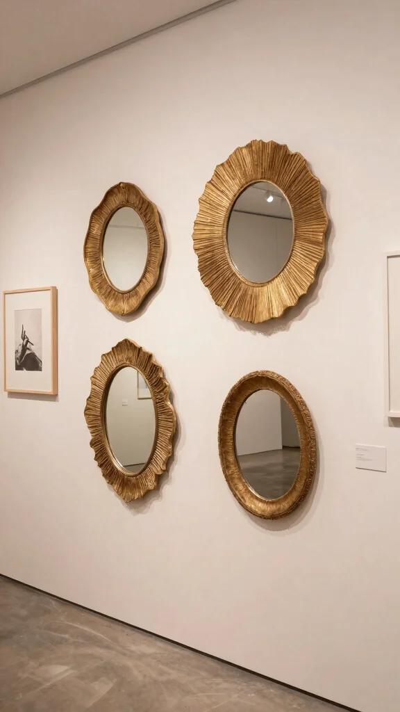 Sculptural mirrors introduce artistic flair to your gallery wall, becoming conversation starters and focal points that create a dynamic display. These unique designs stand out beautifully against simpler wall art, helping to balance the composition while ensuring the mirrors take center stage.