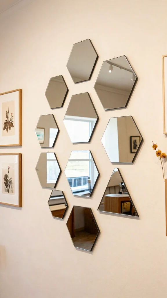 Geometric mirrors inject a modern twist into your gallery wall, offering a visually stunning arrangement that draws the eye. Their unique shapes create a contemporary flair that pairs beautifully with softer, organic wall art, striking a balance that reflects a bohemian aesthetic.