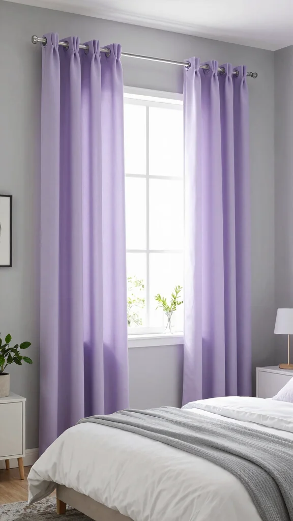Light lavender curtains can introduce a gentle and charming touch to your grey bedroom, enhancing the overall romantic feel. This soft hue pairs beautifully with grey tones, creating a relaxing atmosphere that encourages unwinding after a long day. Choosing lightweight fabrics captures the delicate essence of lavender, making the space feel airy and inviting.