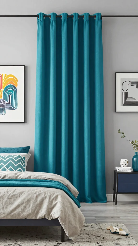 Cool teal curtains can introduce a refreshing contrast to your grey bedroom, enhancing the overall aesthetic with a vibrant touch. This lively color pairs beautifully with grey, creating a lively atmosphere that feels both modern and inviting. Teal drapes can serve as a striking focal point in your room, perfect for those who enjoy a dynamic vibe.