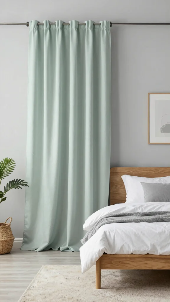 Light sage curtains can breathe fresh air into your grey bedroom, establishing a serene and natural atmosphere. This soft, earthy tone harmonizes beautifully with grey, creating a soothing environment that feels grounded and inviting. Sage-colored curtains work well with various textures, from linen to cotton, offering a relaxed yet sophisticated feel.