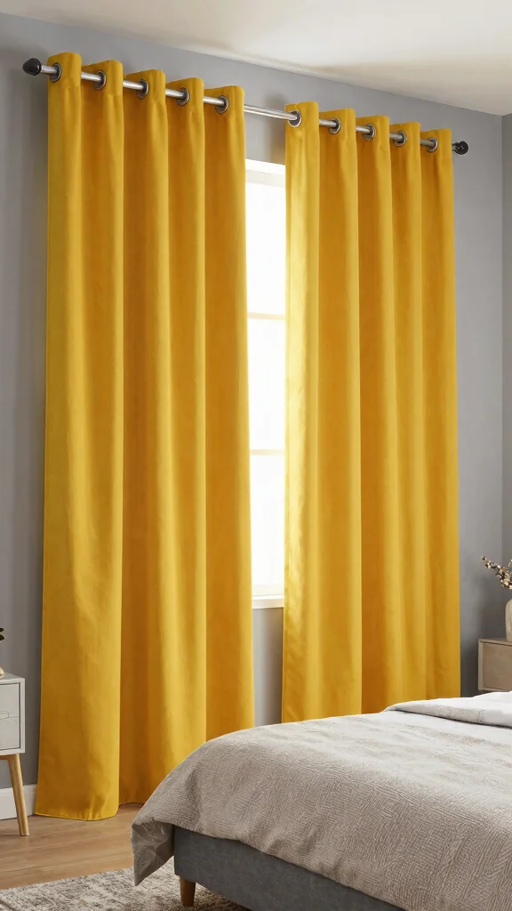 To let the curtains shine, keep other decor elements simple and understated. Mustard pairs well with deep blues or soft greys, allowing for a balanced color palette that feels both playful and sophisticated.