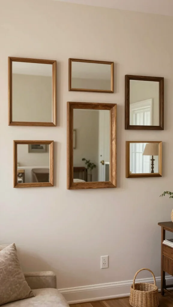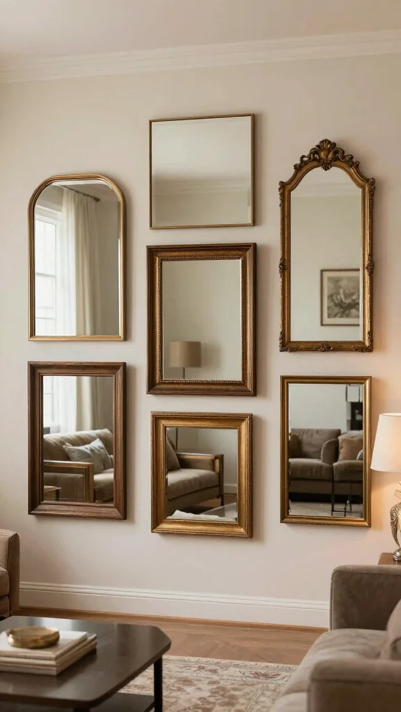 Think scale and proportion. Start with one large statement mirror as the anchor; in a small room you can also create balance with two matching mirrors flanking a console. For a playful look, a curated cluster of three to five small mirrors can work, but keep total width comfortable for the wall so it doesn’t feel crowded—aim roughly 60–75% of the wall width. Matching frame styles helps with a cohesive, intentional look, a key part of interior design tips and mirror styling.