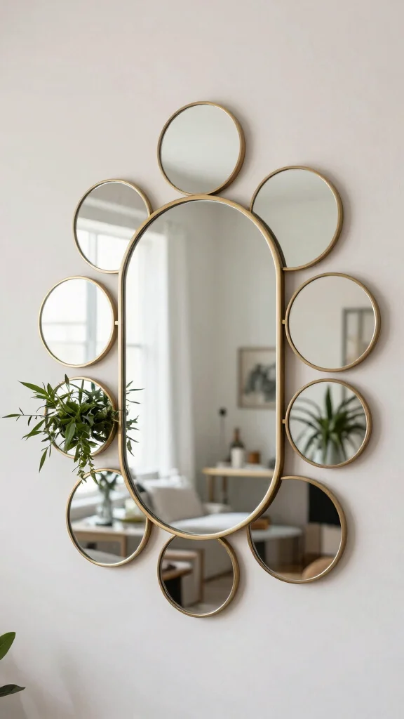 Combine multiple mirrors of different shapes and sizes to create an artistic gallery wall for added visual interest.