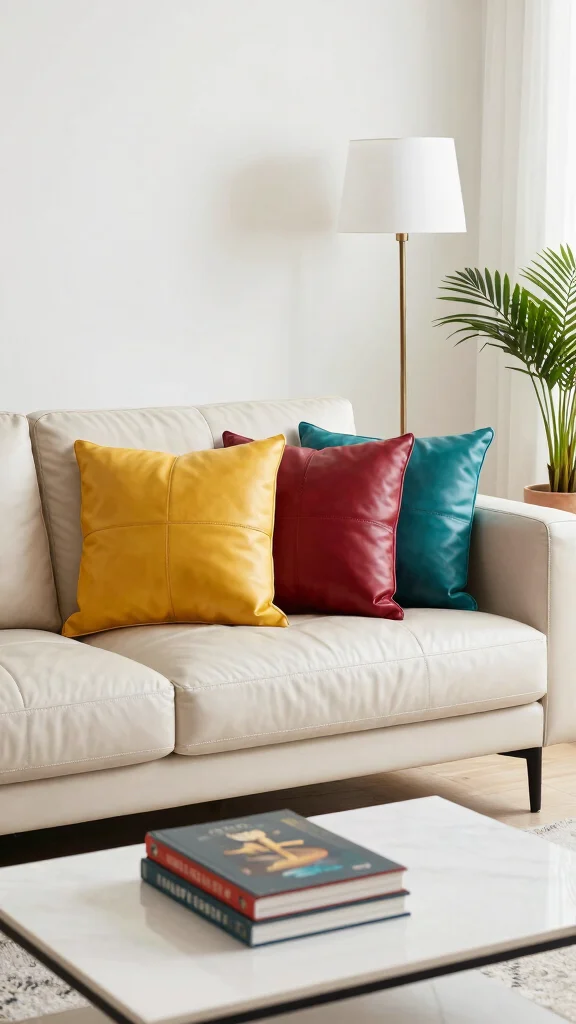 Colorful leather pillows can spark conversations and showcase your unique style, making your space feel lively and inviting.