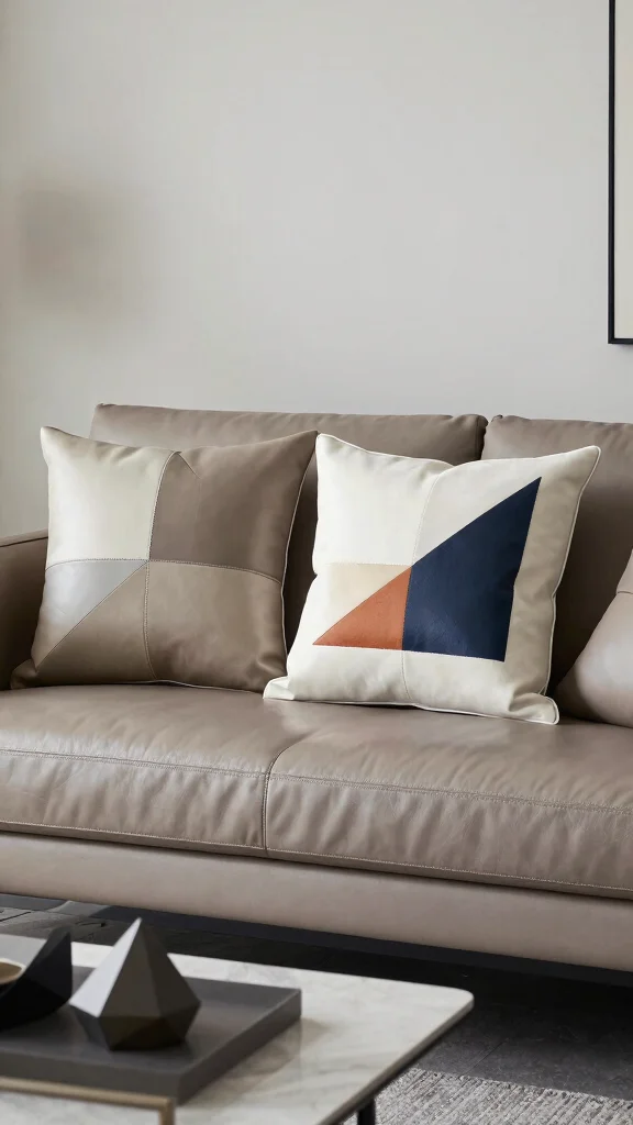 Geometric leather pillows bring a modern twist to your couch styling, infusing sophistication into your decor. Their strong lines and shapes create a sense of order, making them ideal for contemporary homes. These pillows easily pair with various solid colors for an eye-catching appearance.
