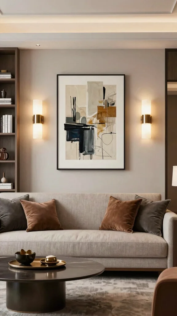 Choose sculptural lighting designs to serve as statement pieces that elevate your living room’s aesthetic.
