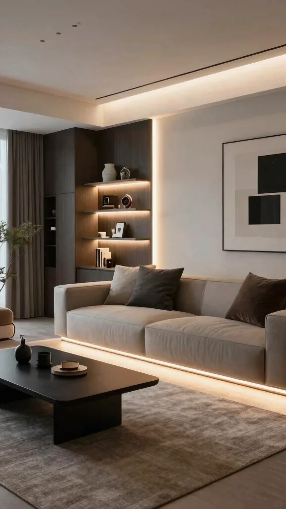 LED strip lighting offers a modern and stylish way to enhance your living room. These flexible, adhesive light strips can be installed under furniture, along shelves, or around door frames, creating a unique ambient glow.