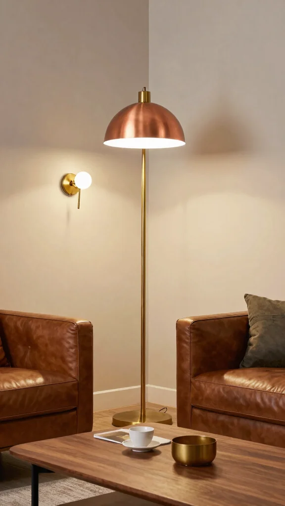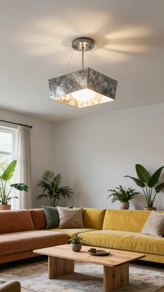 Brass and copper lighting fixtures add warmth and elegance to your living room, making a stylish comeback. These materials reflect light beautifully and complement various decor styles, from mid-century modern to industrial chic.