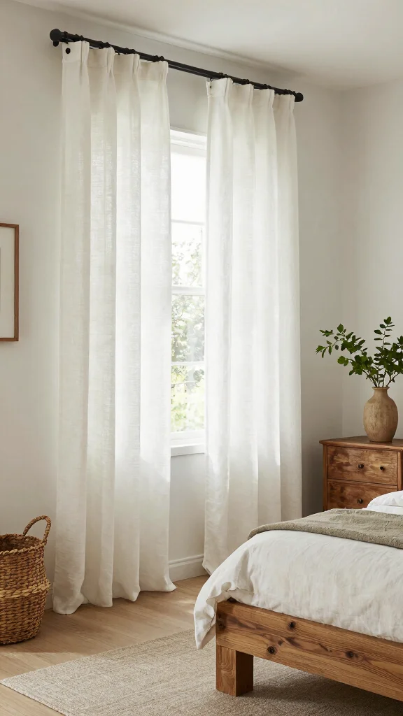 To maximize this look, consider layering these curtains with blinds for added privacy during the night. You can also find budget-friendly alternatives by sourcing similar fabrics from local markets or fabric stores. This combination connects to the broader trend of minimalist design, where simplicity brings peace and clarity to your home.