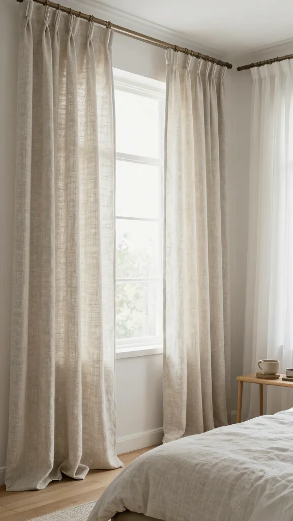 Lastly, consider switching your linen curtains seasonally to refresh your bedroom’s look. Lighter colors and sheer fabrics for spring and summer create an airy feel, while deeper hues and heavier materials add warmth and coziness in the fall and winter. This flexibility allows you to express your style in new ways throughout the year, keeping your space feeling fresh.