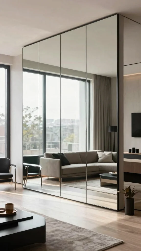 – Accent Wall: Install a series of mirrored panels for a striking focal point.