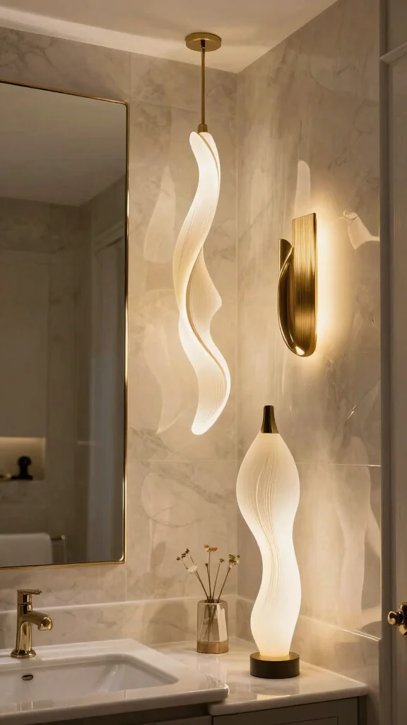 Art-inspired lighting in the master bath elevates routine moments into gallery-worthy rituals. For master bath lighting fixtures, choose sculptural fixtures with dimmable smart LEDs and layered lighting—practical, dramatic, and easy to control for a luxe upgrade that works every day.