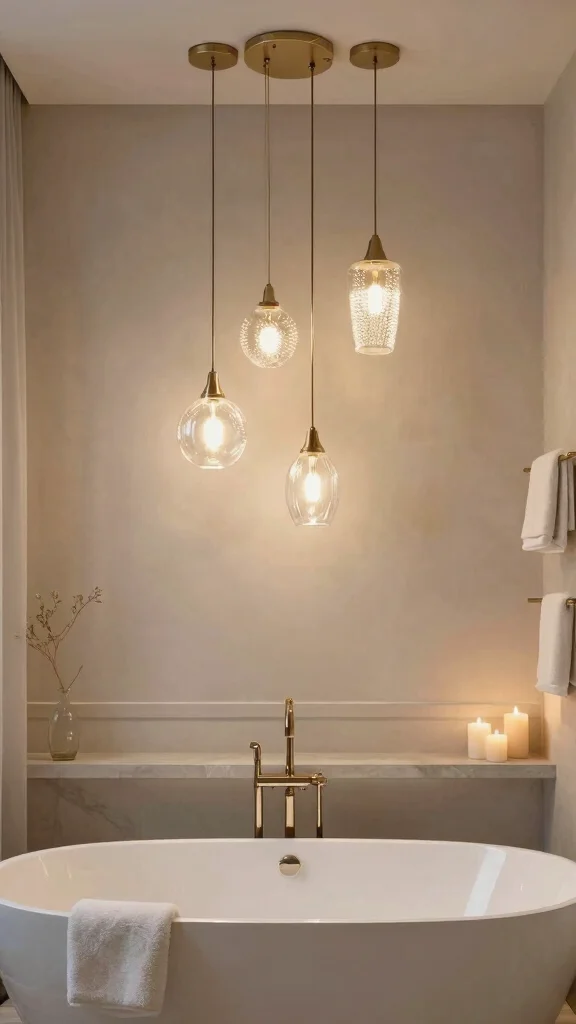 When selecting pendant lights, consider styles that resonate with your aesthetic, from industrial chic to bohemian elegance. Adjustable heights allow you to tailor the lighting effect, ensuring your bath is both stylish and functional. Layering them with other light sources can create a well-rounded ambiance.