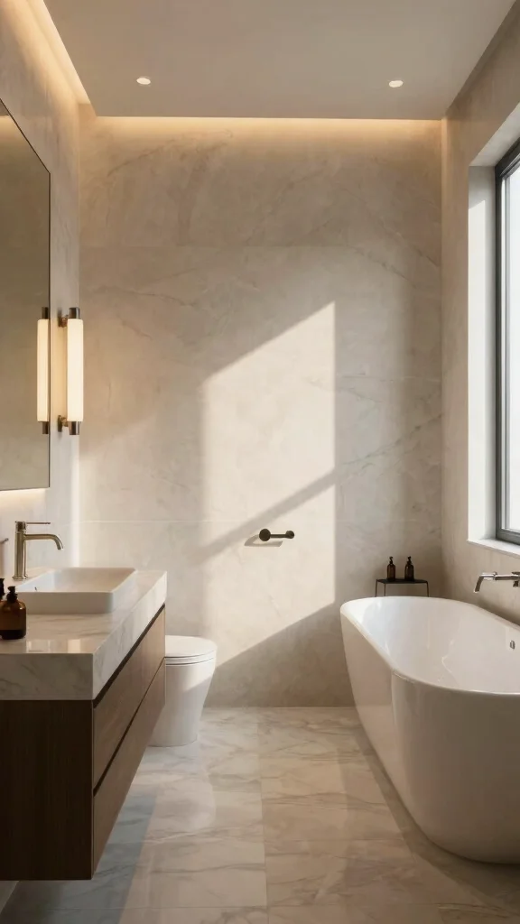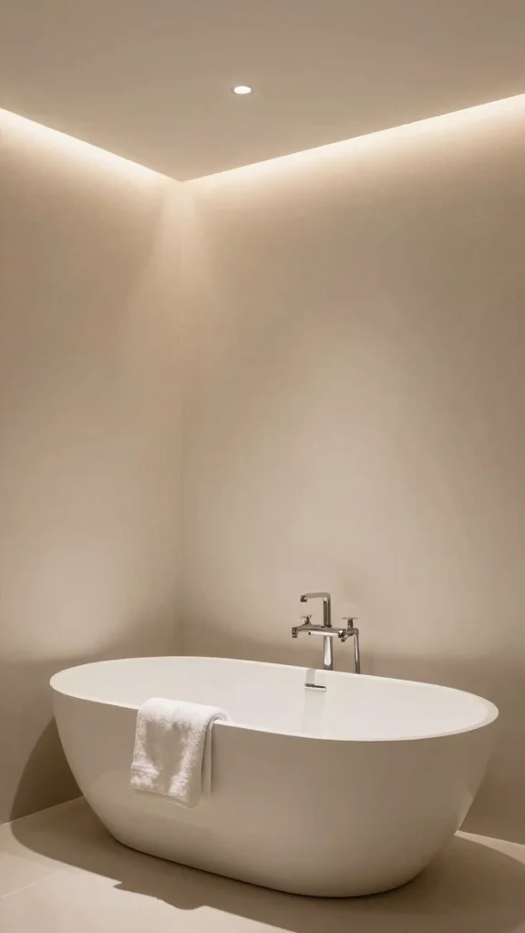 Ambient cove lighting introduces a soft, diffused glow that transforms your master bath into a serene sanctuary. Installed in recesses around the ceiling or behind vanities, this lighting technique softens harsh shadows and creates an inviting atmosphere, perfect for relaxation.