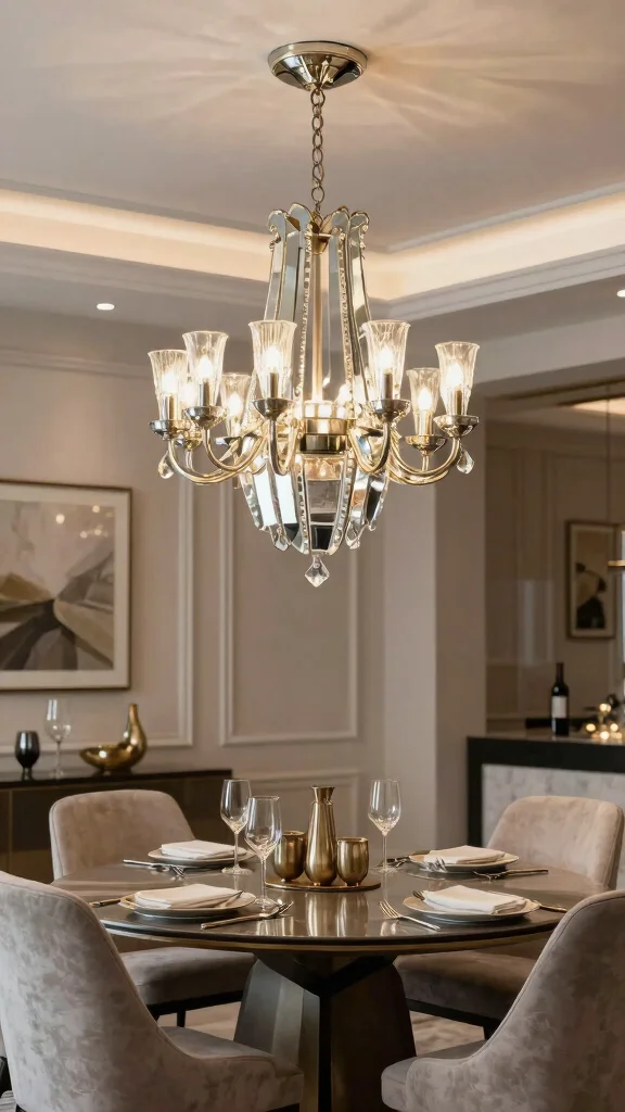 Look for vintage chandeliers or pendant lights featuring mirrored elements to tie into your aesthetic. Ensure that these fixtures complement your overall dining room style, creating a cohesive look.