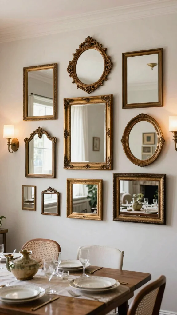 Creating a vintage mirror collage allows you to showcase a variety of styles and shapes, adding personal flair to your dining room. This eclectic arrangement can express your personality while serving a practical purpose.