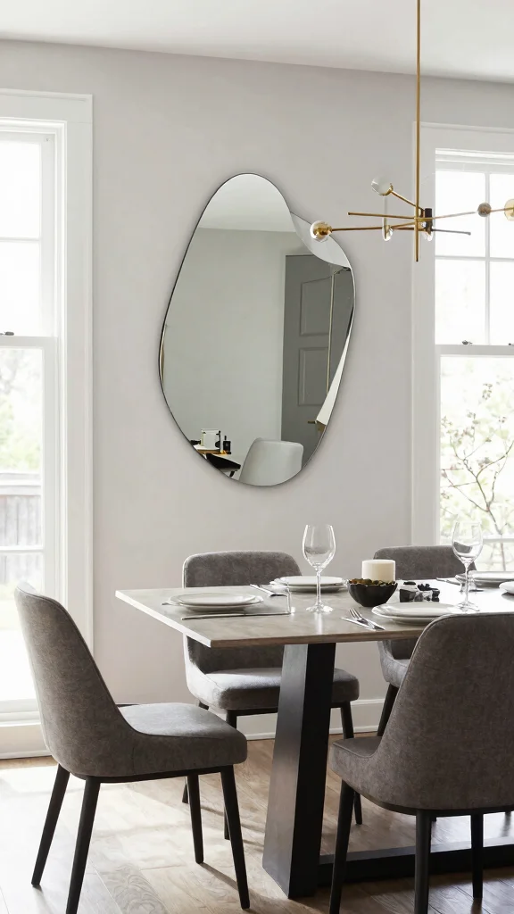 Fun fact: Asymmetrical mirrors can visually expand a dining room by up to 20%—especially when paired with traditional chairs. This bold, modern twist elevates mirrors dining room wall aesthetics, sparking conversation and guiding elegant entertaining.