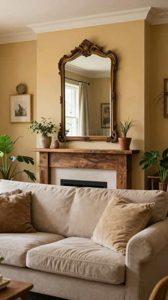 Vintage mirrors can beautifully enhance your living room’s character while contributing to a spacious feel.