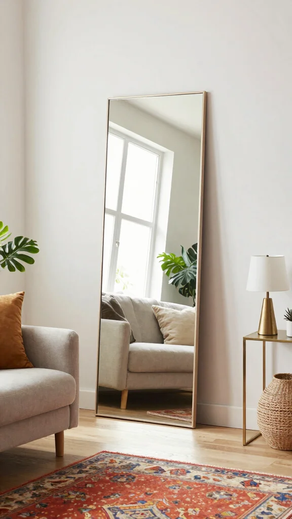 Minimalist floor mirrors can elevate your living room decor, making it feel larger and more inviting.