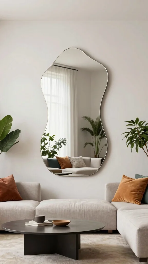 Unique-shaped mirrors are a fantastic way to infuse artistry into your living room. Rather than sticking to traditional shapes, consider abstract or unconventional designs that stand out and spark conversation. These mirrors enhance your decor while providing the illusion of space, making them both functional and decorative.