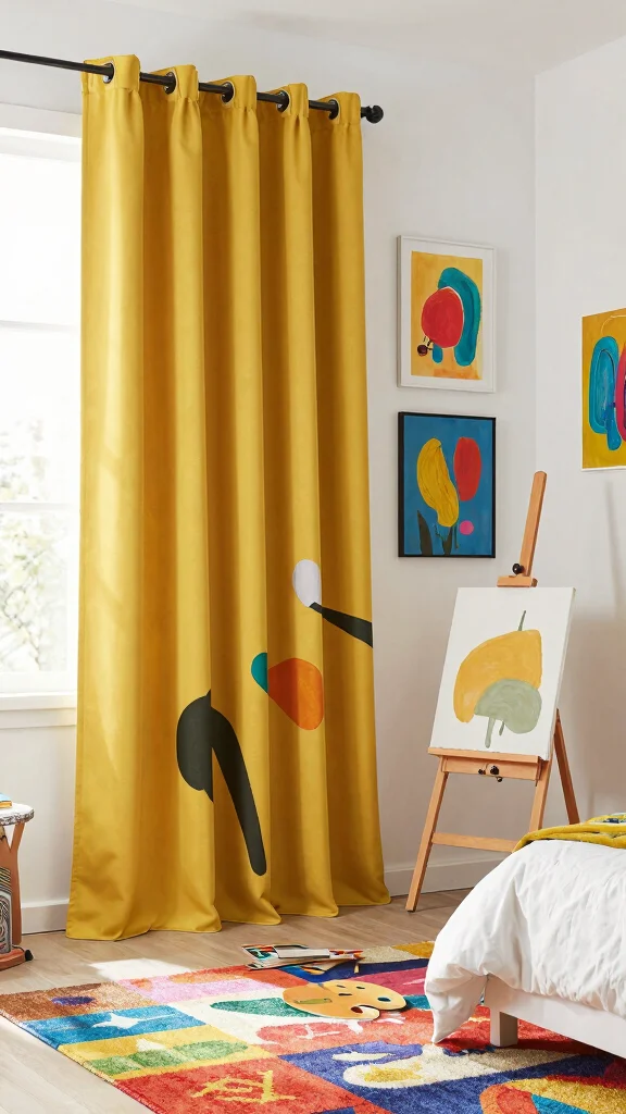 Let your creative spirit shine with mustard yellow curtains as a canvas for artistic expression in your bedroom.