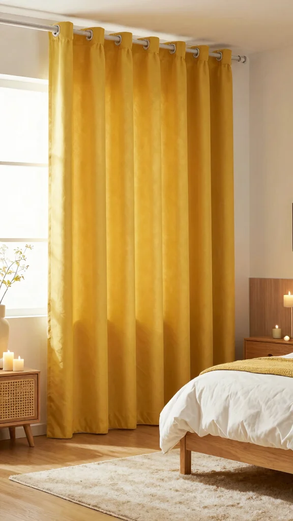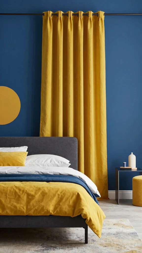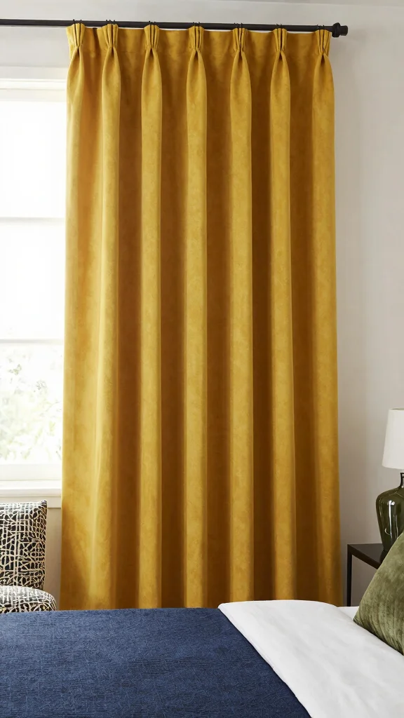 Color-blocked style with mustard yellow curtains bedroom can instantly elevate a space. Pair them with deep blues or greens for a modern pop, then let solid accessories keep the look clean—your room will feel brighter and more welcoming.