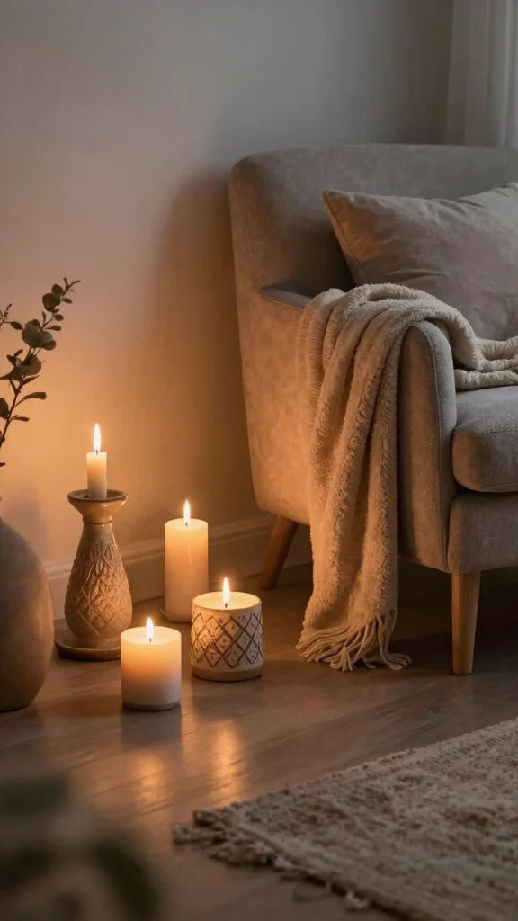 Incorporate candle holders for soft, ambient lighting that enhances the cozy feel of your nook.