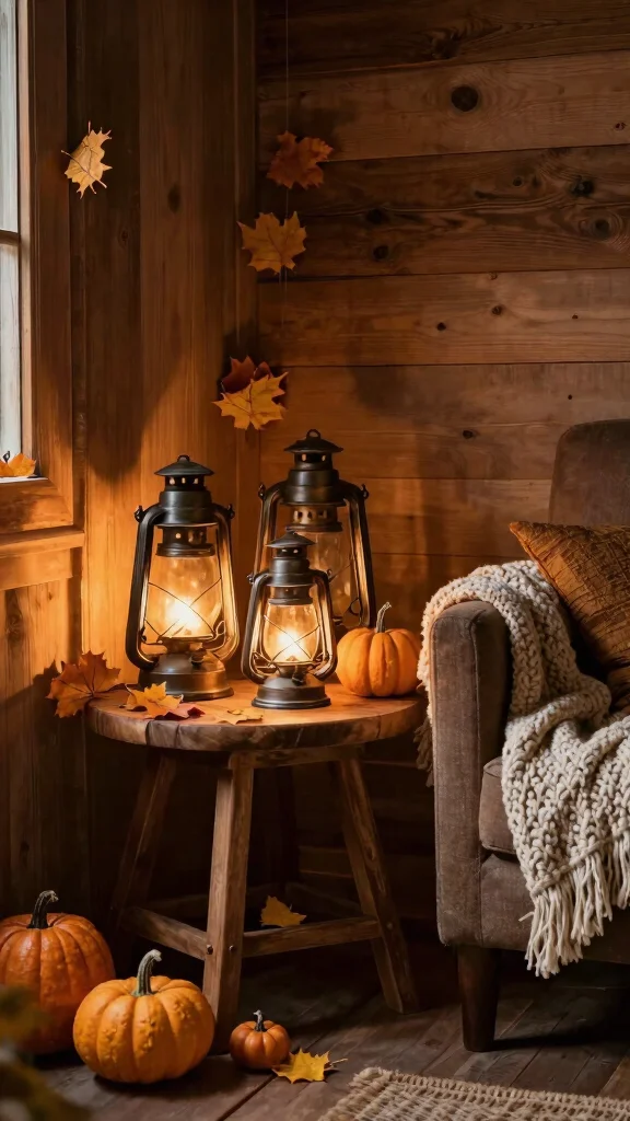 Battery-operated lanterns provide the perfect solution for spaces without electrical outlets, allowing for creative placement throughout your nook. You can also style them seasonally – think autumn leaves or winter greenery for added visual interest.