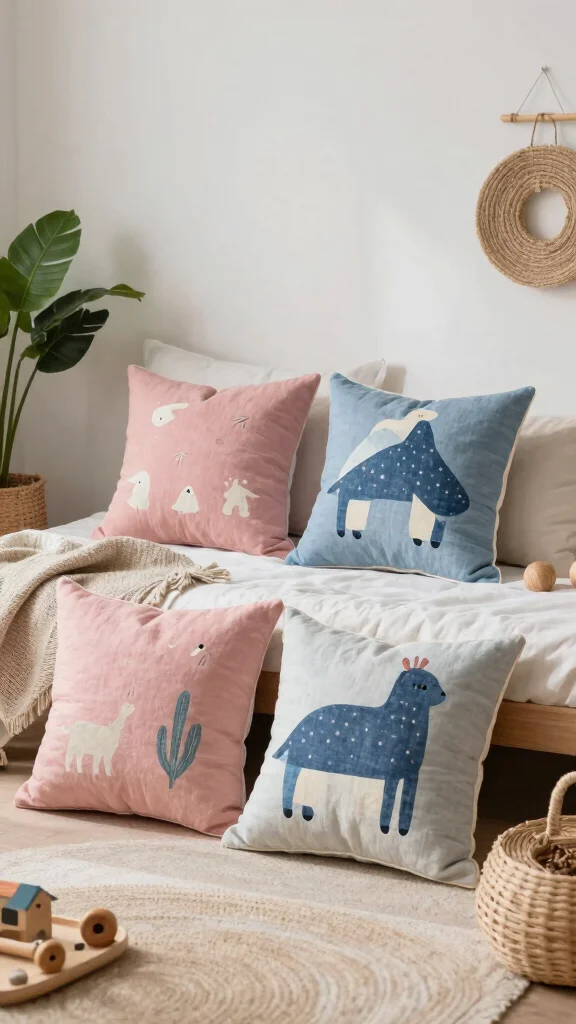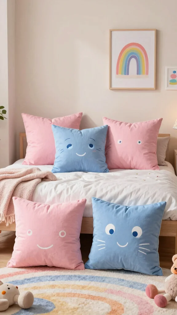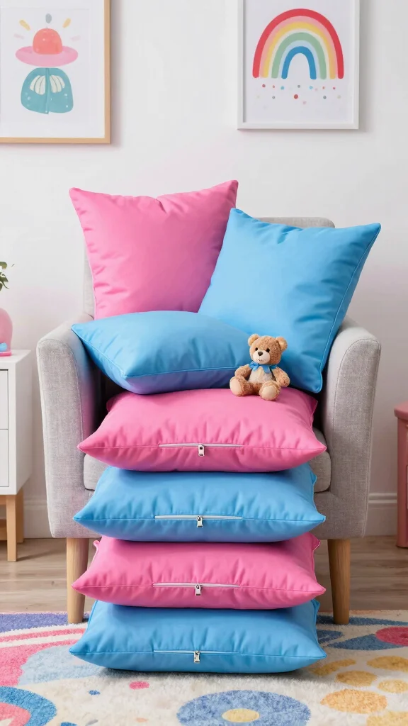 Functional Decor: Consider pillows that serve a dual purpose, such as storage options, to maximize space while maintaining a playful decor theme.