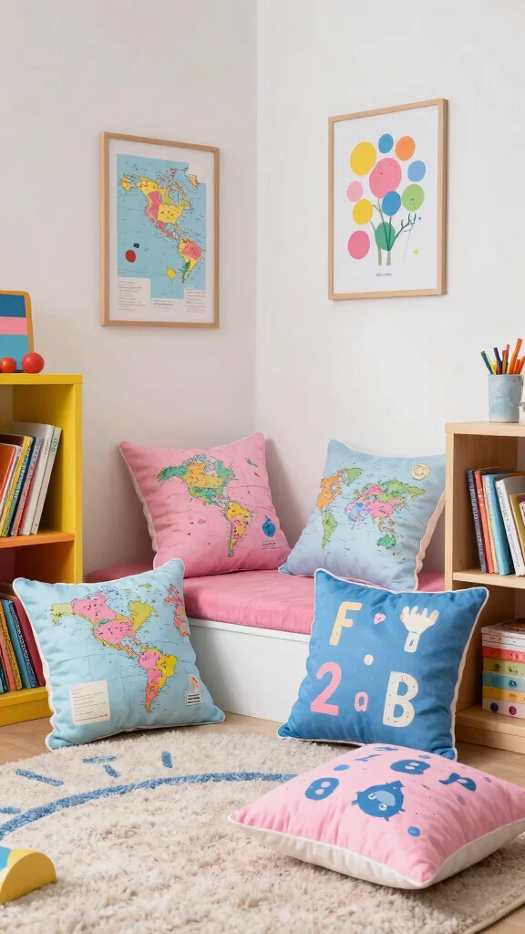 Incorporating educational themes through throw pillows can stimulate learning in a cozy setting.