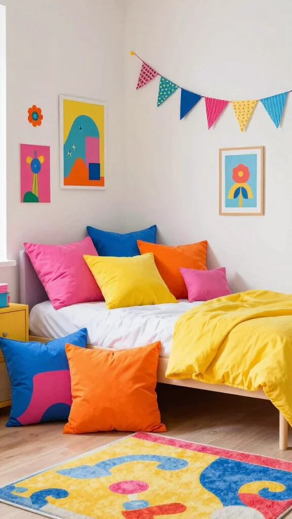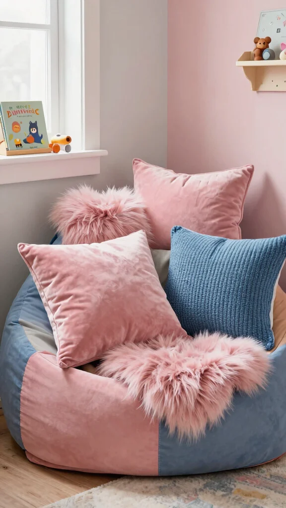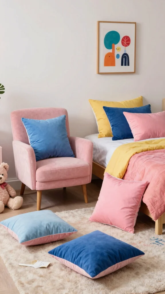 Incorporate pillows with different textures to add depth and comfort, making the space inviting for kids.
