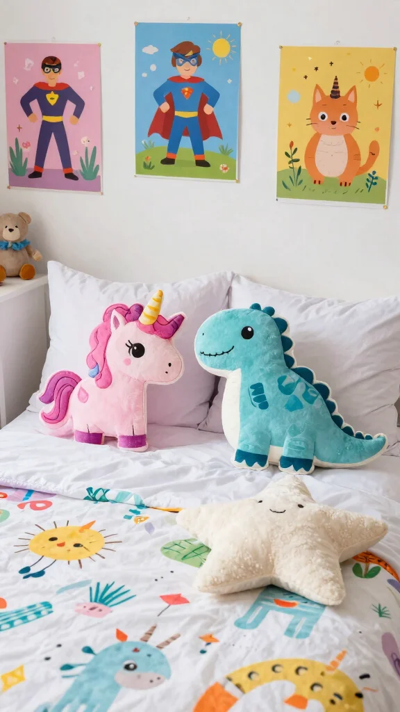– Mix character pillows with solid cushions to maintain balance.