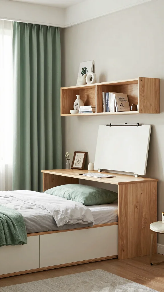 Incorporating functional elements into your bedroom decor maximizes space while enhancing aesthetics. Consider using sage green curtains in conjunction with multifunctional furniture, like a bed with built-in storage or a desk that doubles as a nightstand. This approach ensures your bedroom remains practical without sacrificing style, creating a beautiful and usable space.