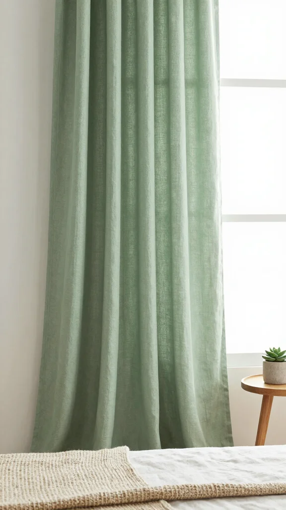 What sustainable fabrics work best to achieve a soft organic look with sage green curtains in a bedroom?