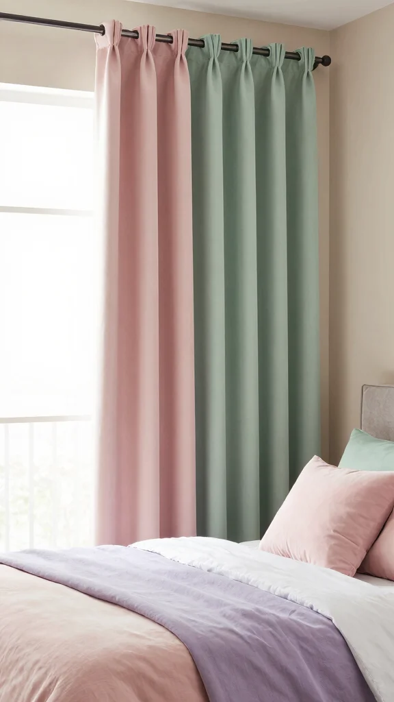 Fun fact: sage green curtains paired with blush pink and soft lavender can boost perceived calm in a bedroom by up to 40%. Pair with warm neutrals like cream or beige to balance the look and keep the space serene and modern.