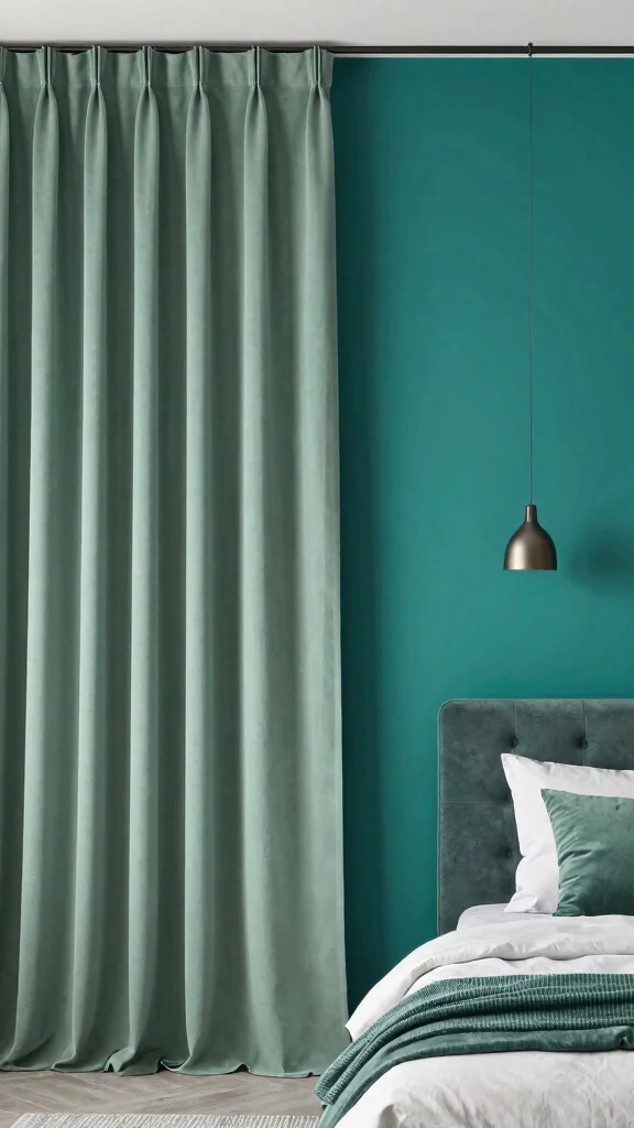 Playing with complementary colors not only enhances your sage green curtains but also revitalizes the entire bedroom decor.